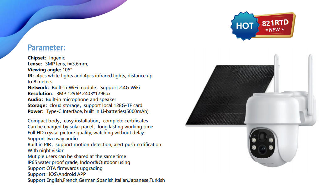 821 New Outdoor Battery PTZ Solar Camera 3MP Full HD Built-in 5000mAh Li-Battery with Solar Panel